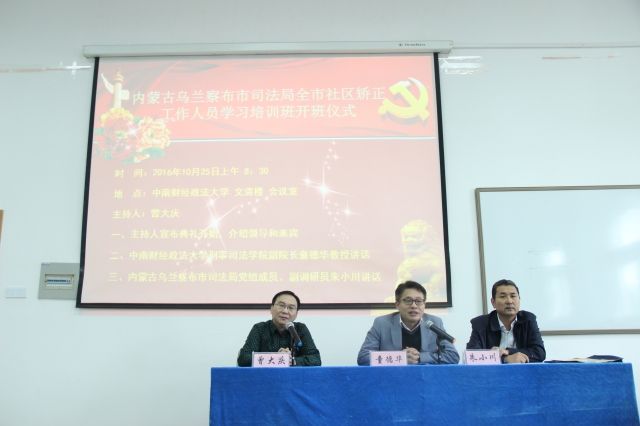 10月25日上午,内蒙古乌兰察布市免费av影片 局全市社区矫正骨干学习培训班在文清楼四楼会议室开班。内蒙古乌兰察布市免费av影片 局党组成员、副调研员朱小川同志、我院副院长童德华教授及乌兰察布市免费av影片 局各位领导同志们出席了本次开班仪式。仪式由我院培训中心主任曾大庆老师主持。
