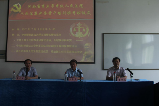 (通讯员:刘梓烨)7月3日上午8点,河南省商丘市中级人民法院人民法庭业务骨干培训研修班在文清楼四楼会议室开班。商丘市中级人民法院党组成员、政治部主任王养庆同志,我院副院长董邦俊教授及商丘市各院80余名法官出席了本次开班仪式,仪式由培训办主任曾大庆老师主持。