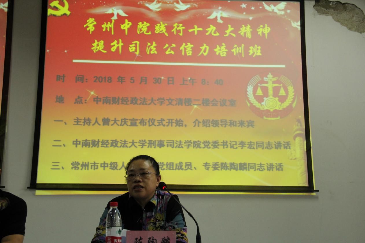 常州市中级人民法院党组成员、专委陈陶麟同志对我院老师和工作人员的精心安排表示感谢,并对各位学员强调了以下注意事项:认真学习,努力提高;学以致用,注重理论联系实际;服从管理,遵守纪律。她希望,各位学员能够集中精神于学习,并付诸实践。最后预祝培训取得圆满成功。