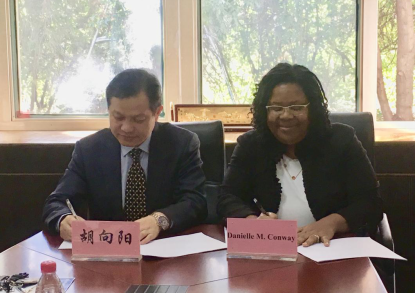 胡向阳院长代表免费av影片 向Danielle M.Conway 院长和Emily Morris副教授致以热烈的欢迎,然后介绍了免费av影片 和我院的发展历程,重点介绍了我院目前的学科、专业、师资队伍、人才培养模式等基本情况,Danielle M.Conway 院长和Emily Morris副教授对我院的学科建设的成就和人才培养特色表现了极大的兴趣和充分的肯定,随后Danielle M.Conway 院长也介绍了美国缅因大学法免费av影片 的基本情况,双方就法学、法庭科学人才培模式合作进行了深入的探讨,并签署了联合培养项目合作协议。