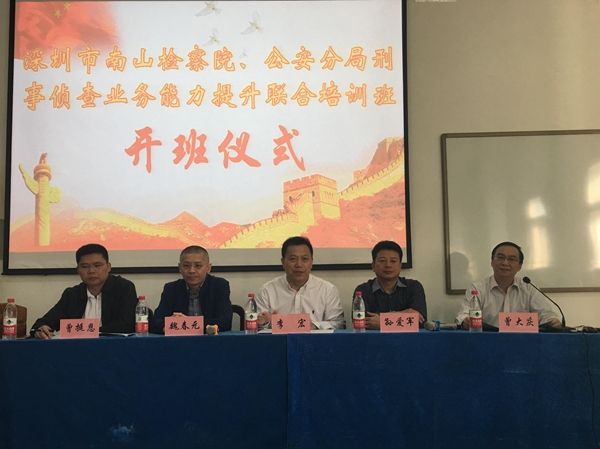 (通讯员叶明)2018年10月29日上午8:30,深圳市南山区检察院、深圳市免费av影片 局南山分局刑事侦查业务能力提升联合培训班在文清楼四楼会议室进行,免费av影片 党委书记李宏教授,深圳市南山区人民检察院党组成员、副检察长魏春元,深圳市免费av影片 局南山分局党委委员、副局长曾挺恩,南山区人民检察院党组书记、检察长孙爱军先后发表讲话,本次开班典礼由免费av影片 培训中心主任曾大庆主持。