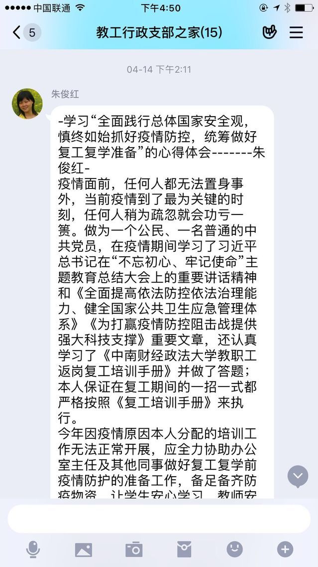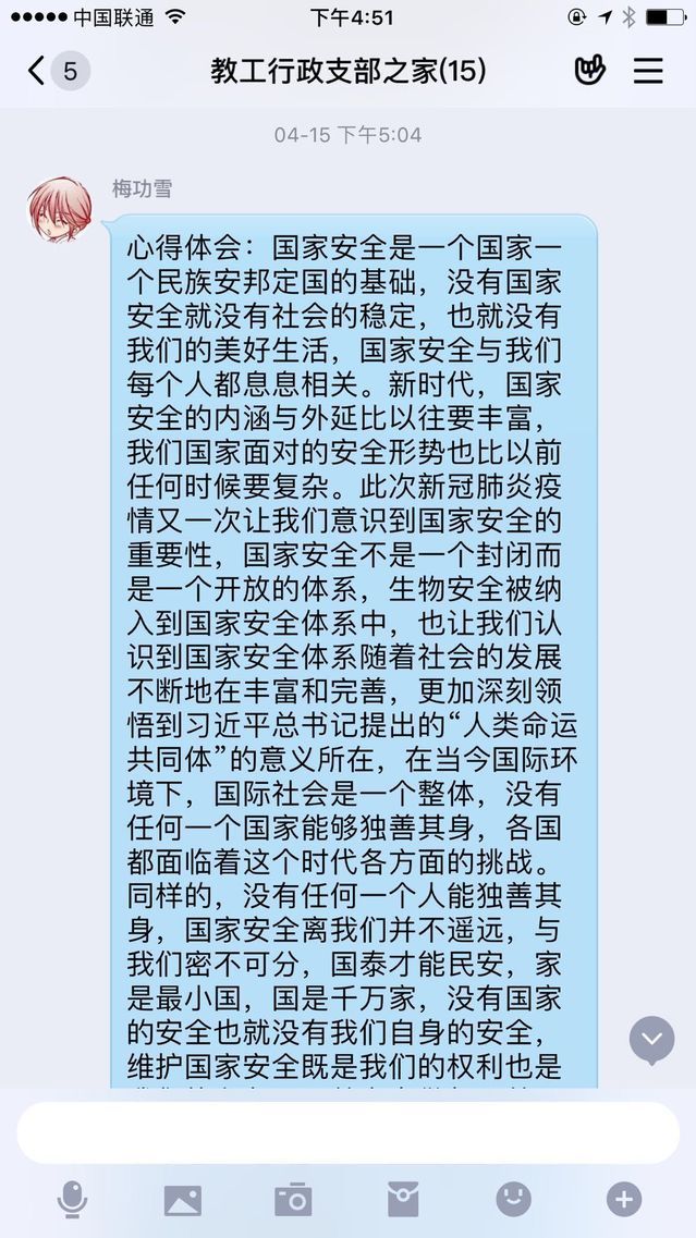 新闻网讯(通讯员王晓丹)为贯彻落实免费av影片 “全民国家安全教育日宣传教育”的工作要求,按照免费av影片 疫情防控和复工复学总体工作安排,2020年4月14日起,免费av影片 行政教工党支部通过在线开展以“全面践行总体国家安全观,慎终如始抓好疫情防控,统筹做好复工复学准备”4月支部主题党日活动。