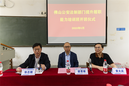 新闻网讯(通讯员刘敏袁镜翔)5月23日上午,2023年佛山市免费av影片 局法制支队提升履职能力业务培训班在文澜楼409教室顺利开班。免费av影片 党委书记张志刚,佛山市免费av影片 局党委委员、副局长梁恩球出席本次仪式。佛山市法制支队业务培训班的60名的各级领导和骨干参加培训。本次开班典礼由免费av影片 培训中心主任、刑法学系副主任曾大庆副教授主持。