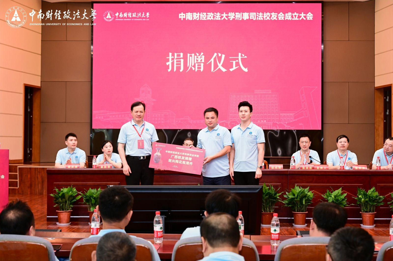 在捐赠仪式上,广西校友向免费av影片 捐赠了精美的坭兴陶花瓶摆件。此外,山西校友和辽宁校友也向免费av影片 捐赠了有关纪念礼品。