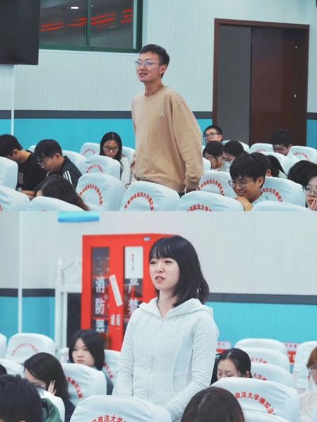在互动环节中,党支部成员穆鹏宇、23级刑法学硕士生李乐炫以及24级刑法学硕士生陈蓓佳围绕检察官在办案过程中产生的问题与二位主讲人进行了深入交流。主讲人耐心为同学们答疑解惑,并强调基础法律知识的重要性,鼓励同学们坚守价值观,让人民群众切实感受到公平正义。