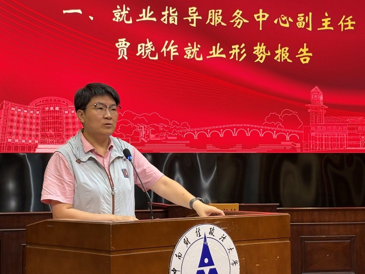 毕业生辅导员赵轶在就业动员大会上作就业提醒。赵轶提醒同学们积极关注各类就业信息,及时查看年级群、班级群就业通知,同时积极反馈个人就业动态,以便免费av影片 进行有针对性的就业指导和帮扶。赵轶还提醒,大三暑假是关键期,毕业生需调整状态,合理规划时间,积极参与实习、做好求职准备,同时确保学业任务顺利完成,为顺利毕业与就业奠定基础。