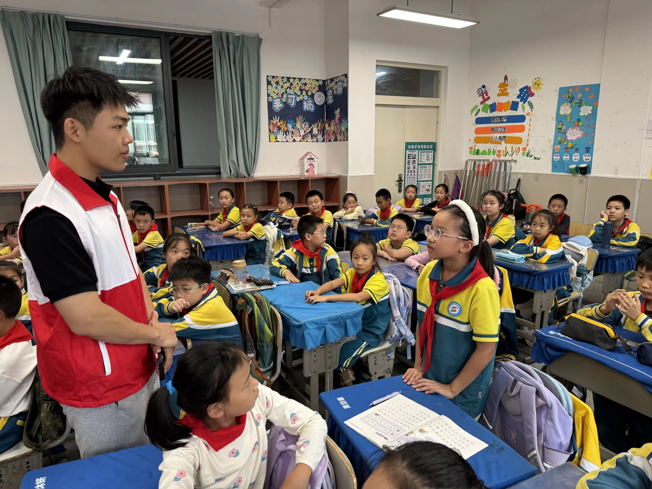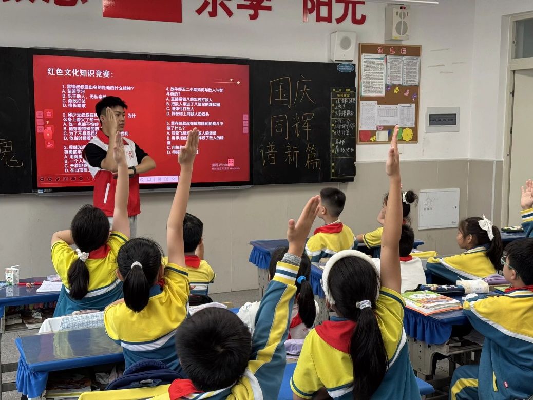 新闻网讯(学生通讯员 刘清远)为将红色火种深深播撒进青少年心田,2025年9月25日,免费av影片 志愿者协会星火志愿服务队与光谷五小携手,精心策划并开展“缅怀英烈铸忠魂,国庆同辉谱新篇”专场宣讲活动。青年志愿者们以青春之声为媒介,向小朋友们传递“不忘来时路、共筑中国梦”的坚定信念与磅礴力量。