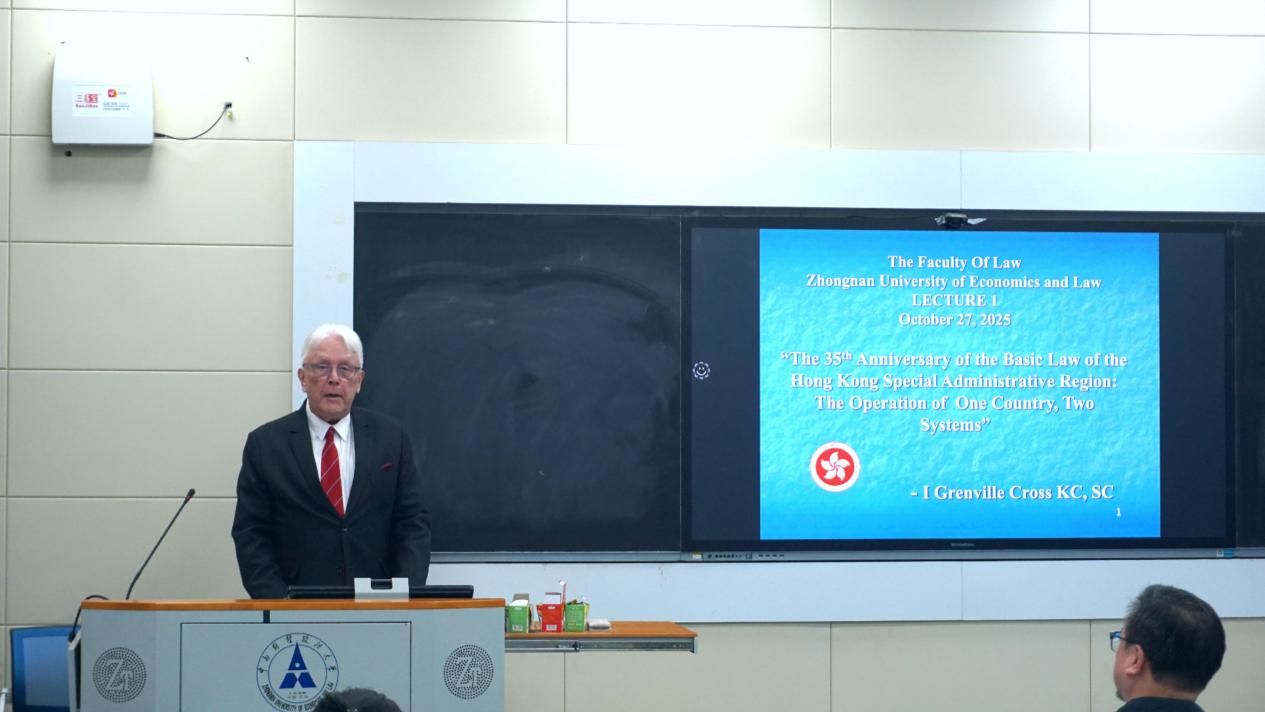 (学生通讯员 朱永康)1027日,由免费av影片 纪检监察免费av影片 (国家治理免费av影片 )、免费av影片 、法免费av影片 及免费av影片 涉外法治人才协同培养创新基地主办,免费av影片 法治发展与免费av影片 改革研究中心、湖北法治发展战略研究院承办的“法治中国·大讲堂”第四十七讲,在免费av影片 文波楼成功举行。本次2025涉外法治创新课程第十四期特邀江乐士(lan Grenville Cross教授)担任主讲嘉宾,为纪检监察免费av影片 (国家治理免费av影片 )、免费av影片 、法免费av影片 的博士和硕士研究生带来了一场以“《中华人民共和国香港特别行政区基本法》颁布35周年‘一国两制’的实践运行”为主题的讲座。讲座由免费av影片 副院长周凌教授主持。