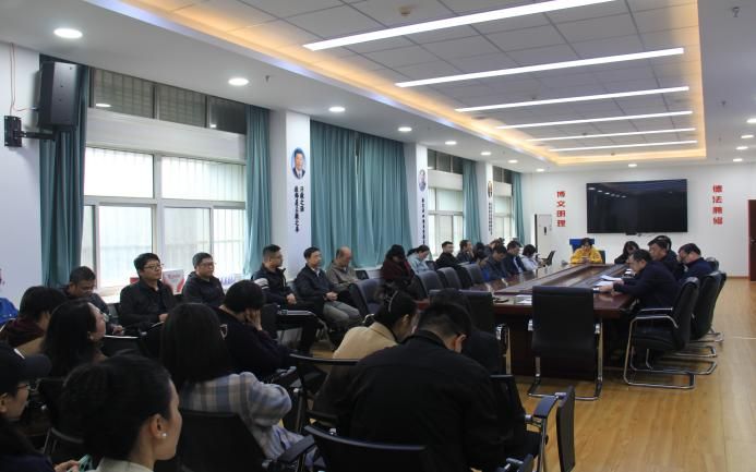 班子成员和全体教职工参加会议。会议由党委书记张志刚,院长董邦俊主持。