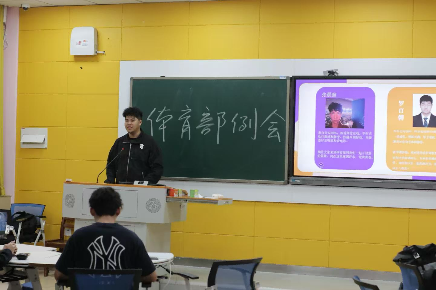 会议伊始,学生会主席团成员方睿轩作开场发言,对新加入的干事表示欢迎。体育部负责人赵金金、杜妍洁、罗百朝、张晨灏分别进行自我介绍,并详细介绍了各自负责的工作内容。随后,全体成员依次介绍自己,从兴趣爱好谈到对部门工作的期待,轻松愉悦的交流不仅缓解了会议氛围,更让大家建立起密切联系。