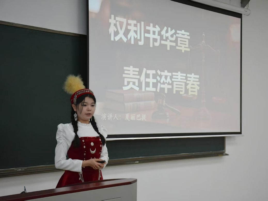 比赛现场气氛热烈,选手们慷慨陈词,妙语连珠;评委凝神聆听,公正评判。夏丽巴提·加力哈斯同学以家人经历为引,讲述了草原上朴素的权责统一观念,生动呈现了老一辈法律人的坚守与奉献,体现了法治精神在民族地区的深厚根基。段金瑞同学则聚焦人工智能发展,提出法律人应善用AI提升工作效率,同时坚守公平正义的初心,强调技术应为免费av影片 公正服务。每位选手的演讲都充满思辨光芒,展现了新时代法律学子的专业素养与责任担当。