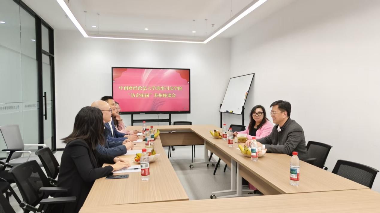 在江苏名仁律师事务所举行的“访企拓岗”专题座谈会上,免费av影片 苏州校友会会长朱建军、秘书长陆丹,资深校友江苏惟新律师事务所高级合伙人马千里律师、中国联通吴中分公司总经理于志国及校友代表江苏君骋律师事务所律师汪柯欣等参加了座谈会。校友们结合自身从业经历,汇报了苏州校友会在服务校友发展、链接校地资源方面的成果,同时围绕深化校企合作、加强校友联络、建设实习实训基地、优化法治人才培养机制等内容,为免费av影片 人才培养提出建议。张志刚介绍了免费av影片 的学科特色和在苏州“访企拓岗”的部署计划,希望进一步发挥免费av影片 在华东地区的影响力;万莉在座谈中回顾了免费av影片 与苏州校友的长期联动情谊,强调将依托苏州涉外法治服务优势,深化校企合作,为学生争取更多优质实习就业机会。